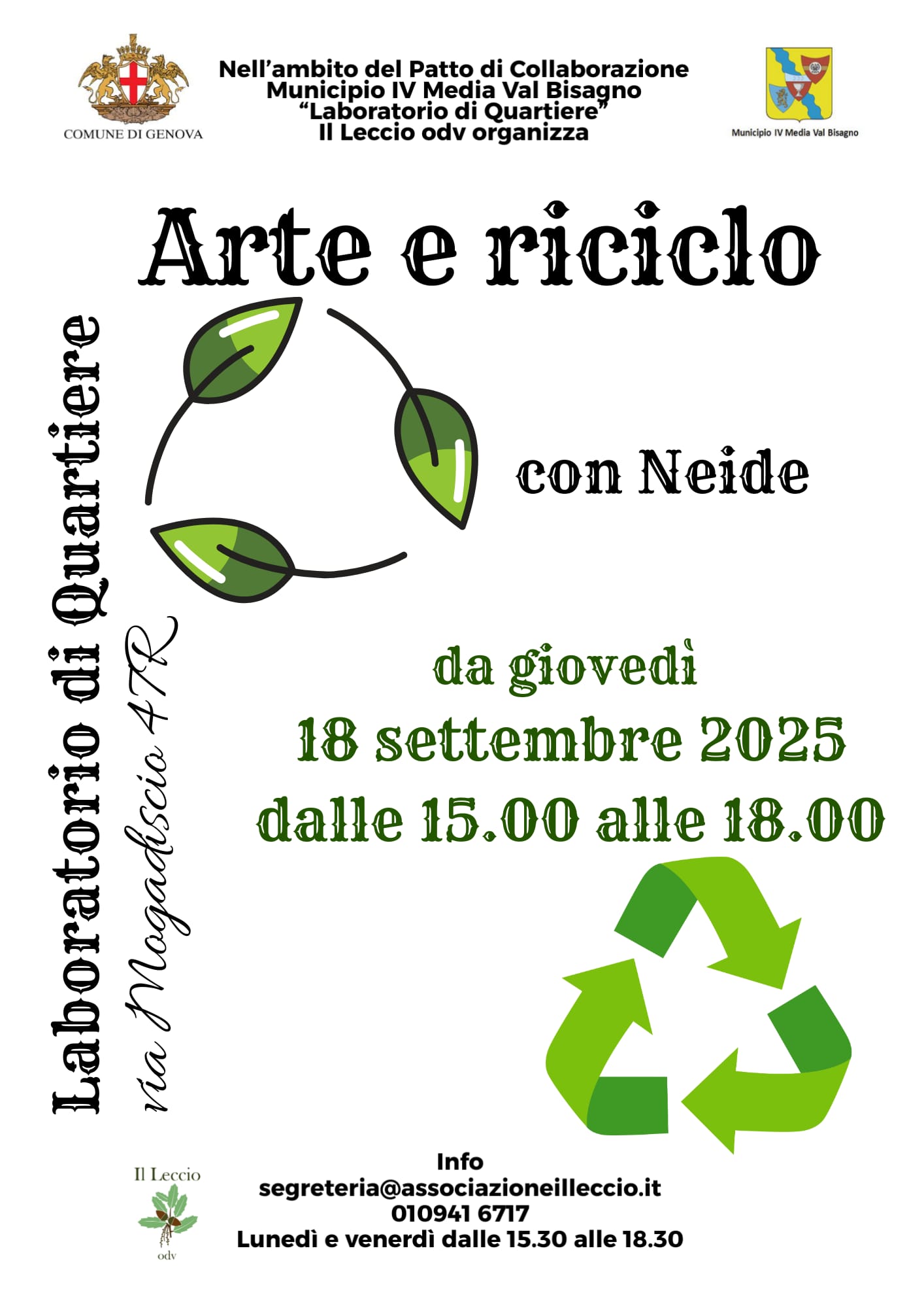 - al Laboratorio di Quartiere (via Mogadiscio 47 rosso), il lunedi ed il venerdi, dalle 15.30 alle 18.30;