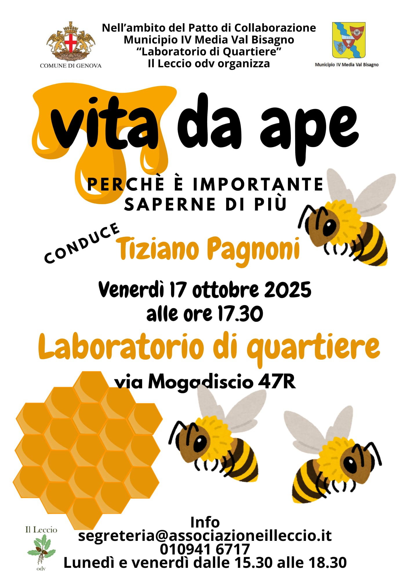 - Venerdì 17 ottobre 2025, alle 17.30, Tiziano Pagnoni parlerà di "VITA DA APE, perchè è importante saperne di più", e della sua passione per l'apicoltura.